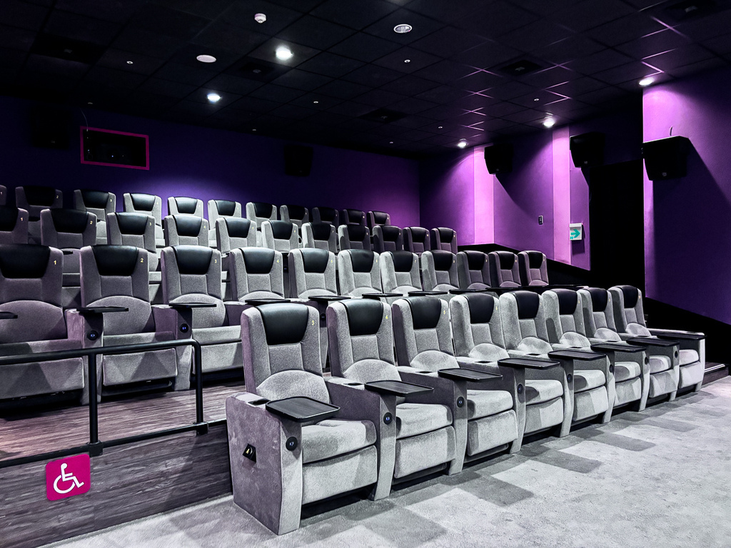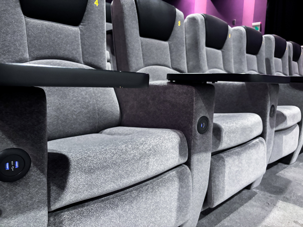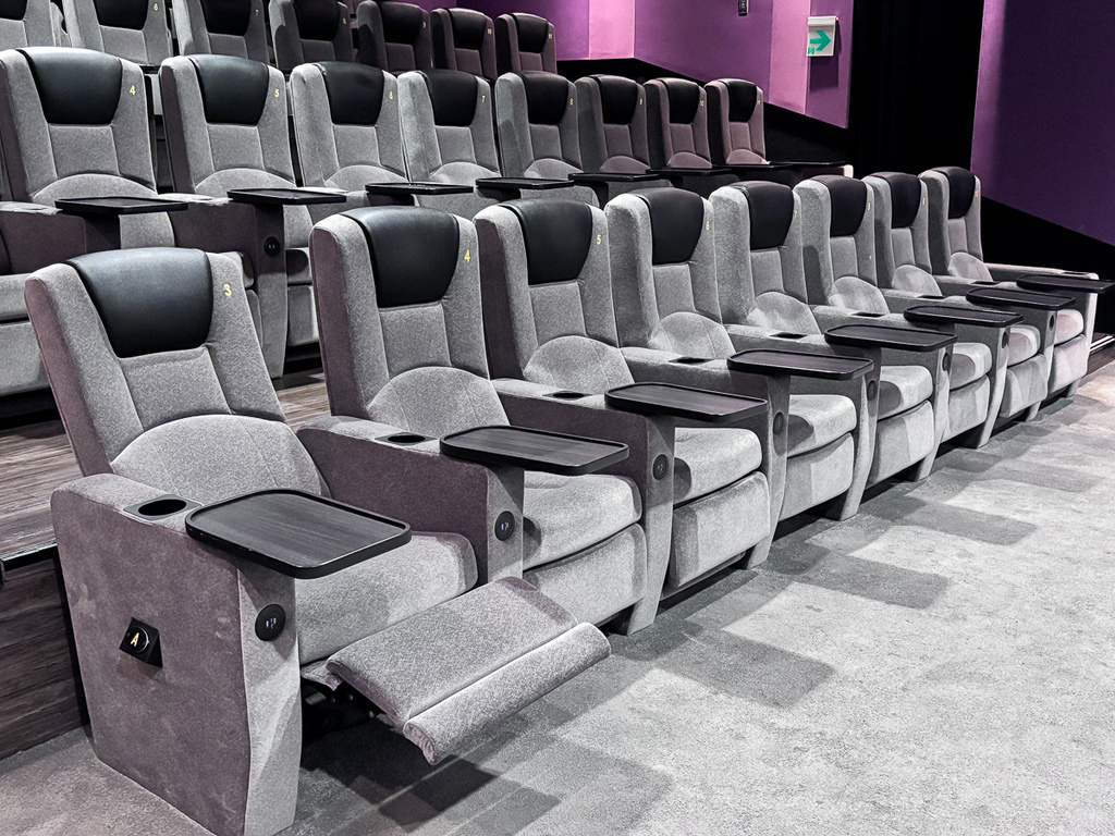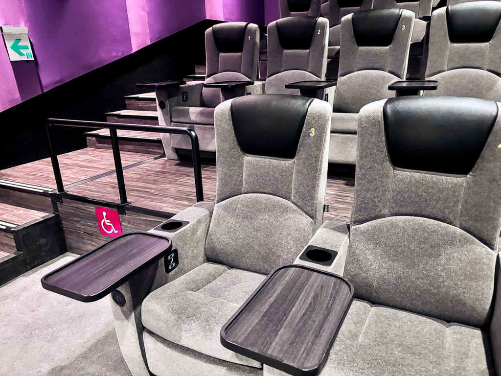 還注意到他們的播放廳都是落地滿框的螢幕,座位有高低落差的安排下,都不會影響到視野。