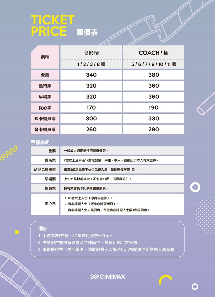 只要銅板價就可以升級COACH椅,可以更舒服的享受看電影的時光。